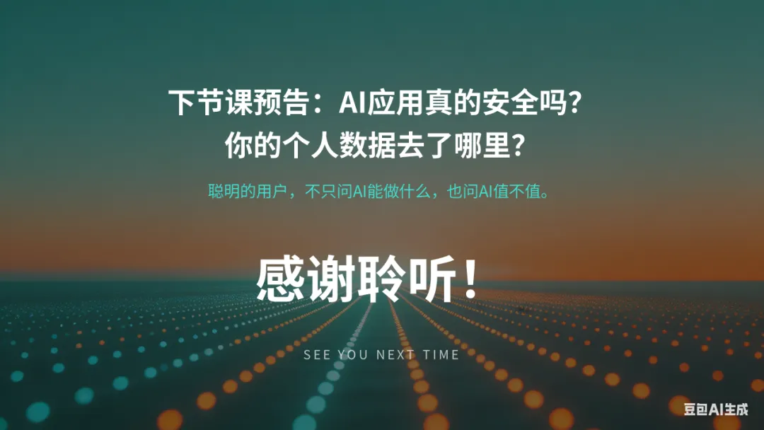 四节课下来,你们对AI的认知又升了一级:不只是"会用",也不只是"会防",还要"会算"——算它背后的资源和代价。