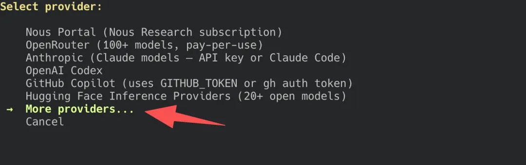 到这里 Hermes 就装好了,但它现在还没法干活——还缺一个大模型。下面我们就来给它接入大模型。
