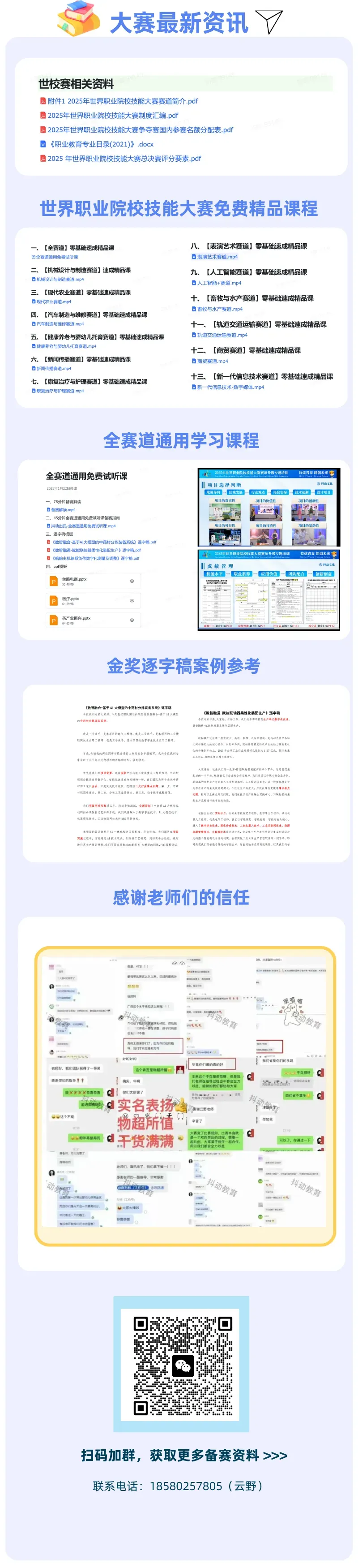 世界职业院校技能大赛的项目汇报 PPT,早已超越简单的成果展示,成为衡量团队综合能力、技术创新水平与教学实践成效的重要依据,更是评审打分的关键参考。✅ 逻辑架构:层层递进、主线清晰,将复杂技术流程转化为简洁易懂的展示逻辑,让评委快速读懂方案核心✅ 成果表达:用数据说话、用案例支撑,把技能成果转化为直观可感知的亮点,大幅提升说服力与竞争力✅ 视觉呈现:风格严谨大气、版式简洁规范,突出职业技能特色与创新精神,符合国赛级正式展示要求✅ 评审思维:站在评委视角设计内容,重点前置、主次分明,兼顾专业性与观赏性,细节尽显专业功底✅ 竞技价值:以 PPT 为桥梁,充分展现备赛思路、实操能力与团队协作,真正实现 “以展促赛、以赛提质”