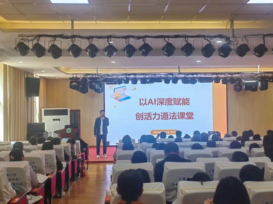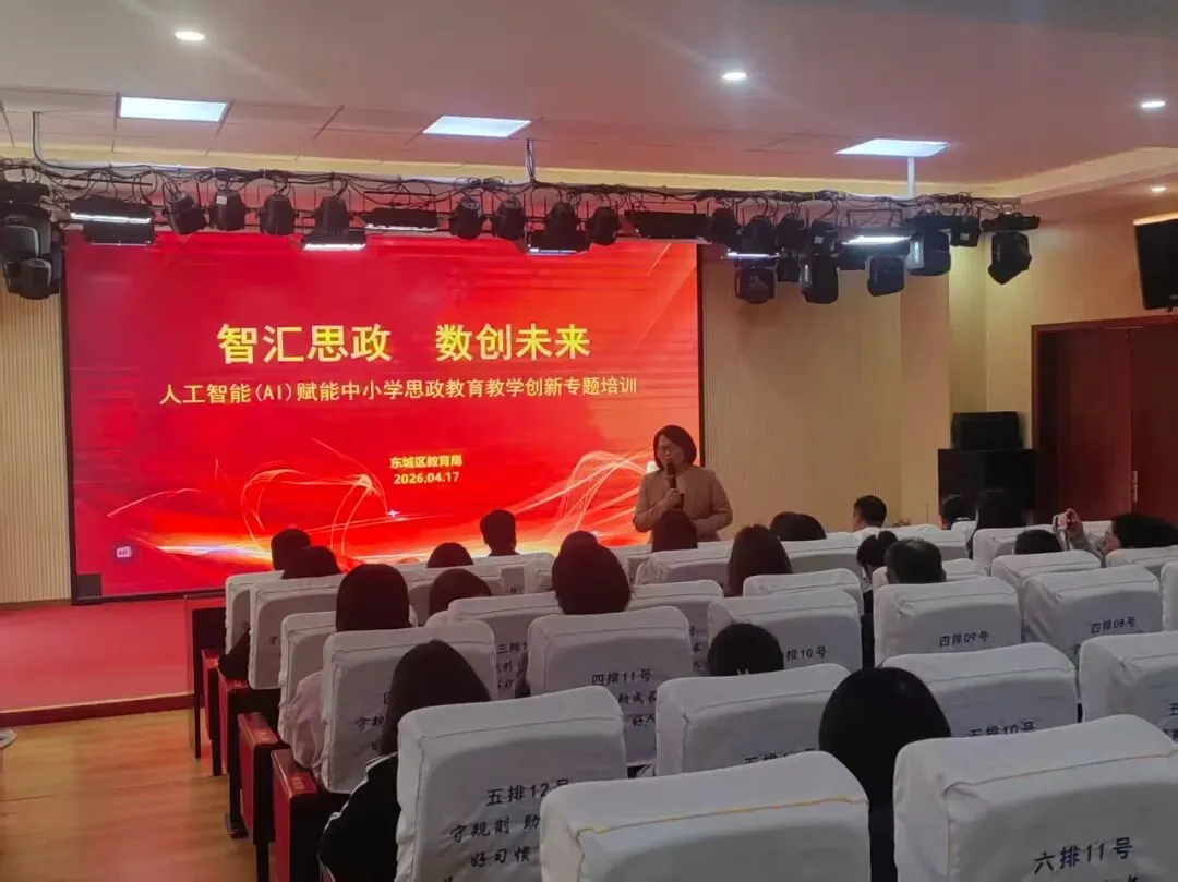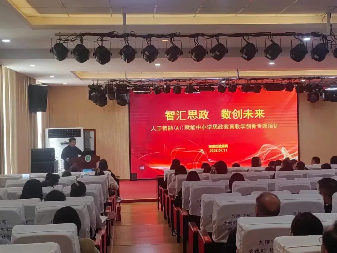 科技赋能教育,智启思政新篇。近日,由东城区教育局思政课、师训科、教研室联合举办的“智汇思政,数创未来——人工智能(AI)赋能道德与法治学科教学创新研讨会”专题培训交流活动在许昌市新东街中学顺利召开。来自各校的一线道德与法治教师、一线信息科技教师齐聚一堂,员小峰小学信息技术名师工作室、李立中学信息技术名师工作室全体成员全程参与、深度助力,共话AI与思政教学的碰撞融合,共探育人新模式、共绘教学新蓝图。