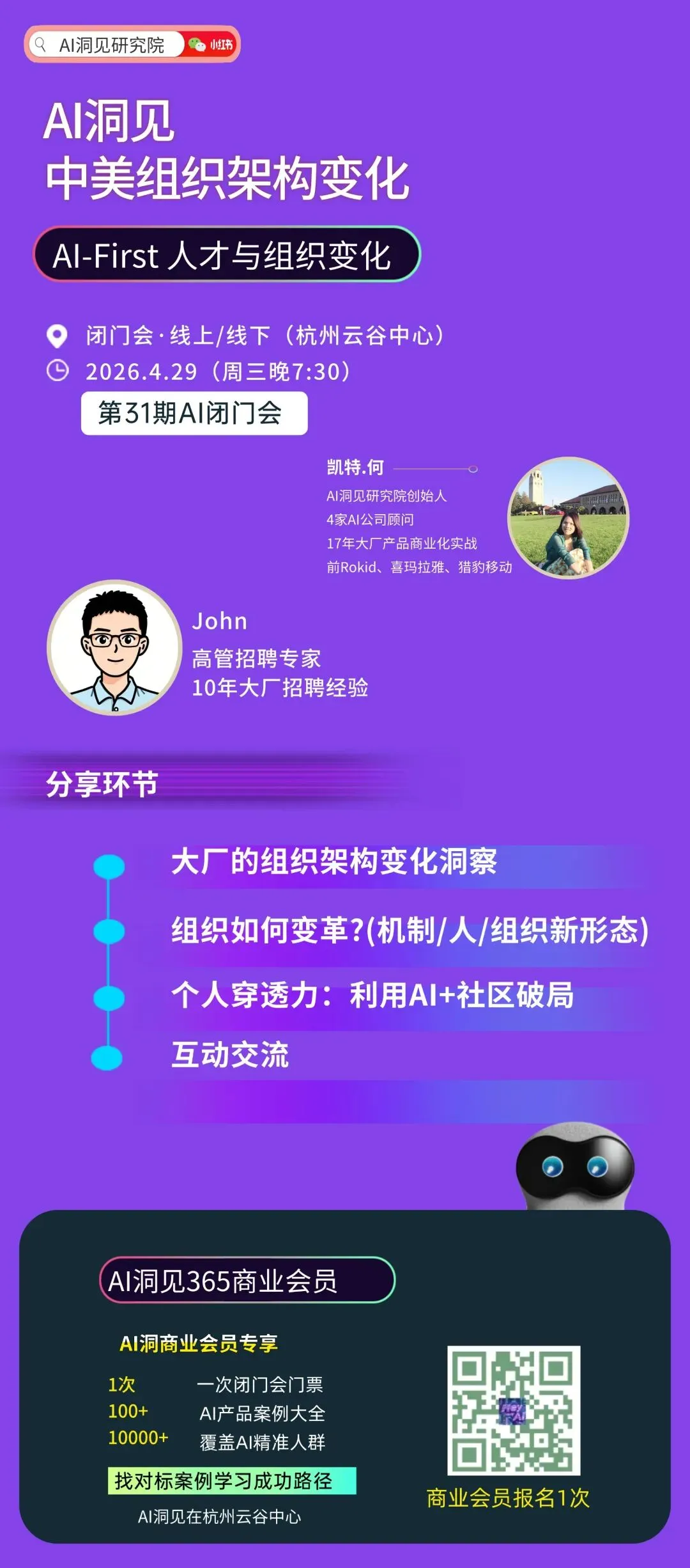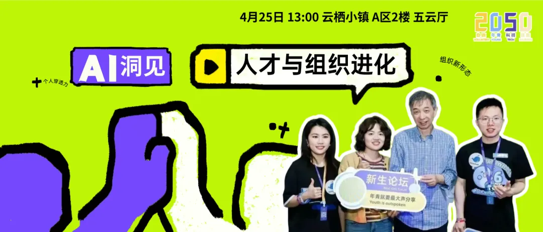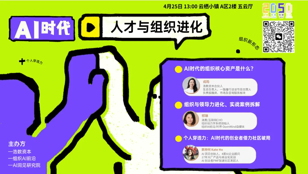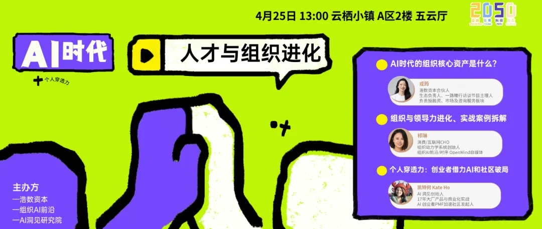 因此,AI洞见认为,我们非常适合在2050这个科技团聚场来一起聊透AI时代的人才与组织进化路径。