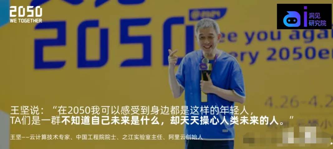 「2050,是由中国工程院院士王坚发起、专为年轻人而生的科技派对,口号简单又炽热:“年青人因科技而团聚”。」