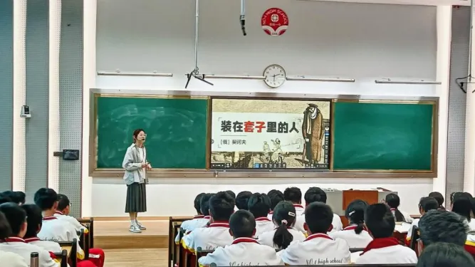 张成仪老师的授课内容是《装在套子里的人》,张老师以“案件侦破”为主线开展文本探究,课前布置前置学习,课堂上先梳理别里科夫人生经历与死亡经过,明确其精神崩溃离世的核心情节;再结合AI对比探究19世纪90年代俄国社会背景,指导学生精准使用AI工具;随后通过嫌疑人角色扮演、AI陪审团分析、学生法官宣判等环节,层层剖析别里科夫死亡的内外原因,挖掘人物悲剧本质与社会环境的“平庸之恶”;最后引导学生思考文本价值,并布置微小说改写任务。整堂课以AI为亮点,用沉浸式活动激发学生参与,深度解读文本主题,兼具趣味性与思辨性。