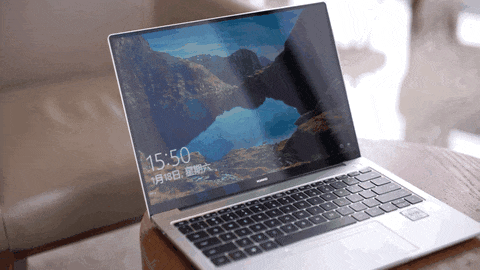 这款笔记本的外观设计目测非常精致,金属一体化机身带来了高级的磨砂质感,顶盖上还可见简约的“HUAWEI”标识。同时,它搭载了一块高素质的全面屏,窄边框设计带来了极高的屏占比,用于显示内容的屏幕区域外还环绕着坚固的金属边框。