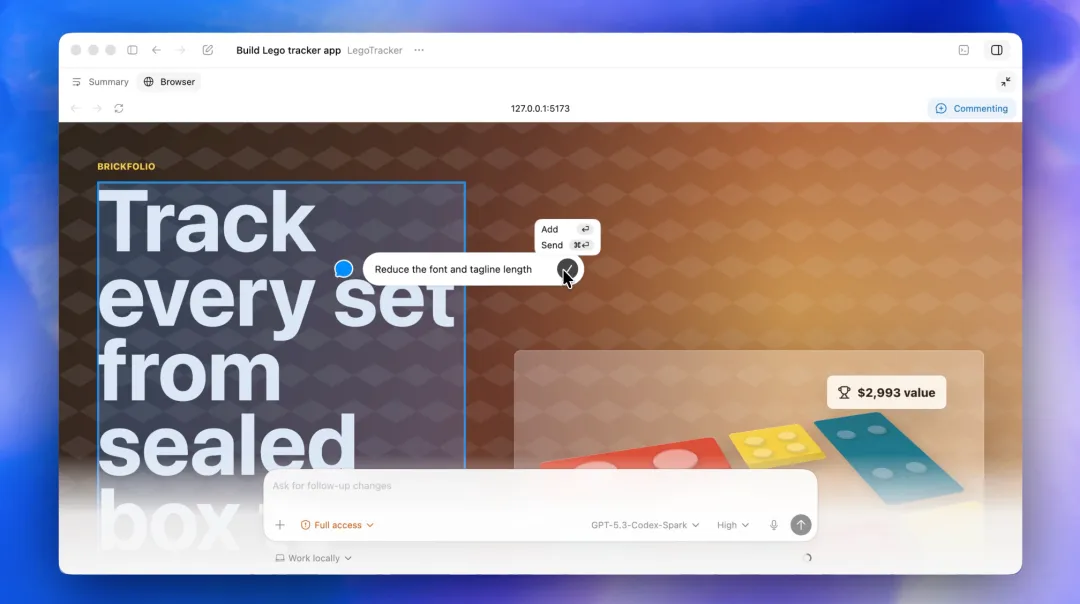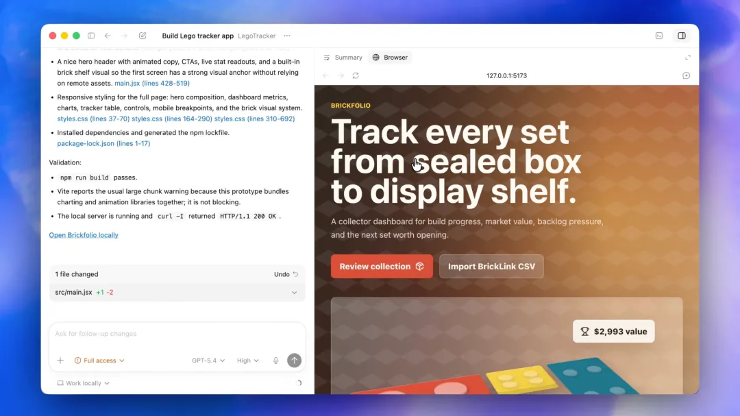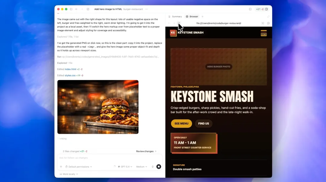 Codex 有了一个内置浏览器,可以实时预览自己写的网页。