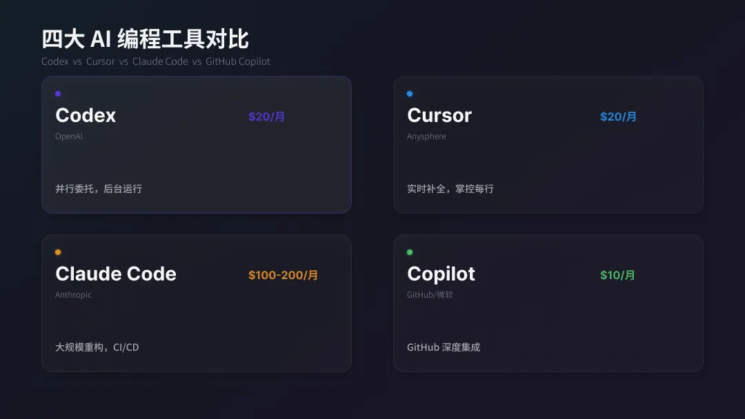 市面上的 AI 编程工具,现在主要有四个: