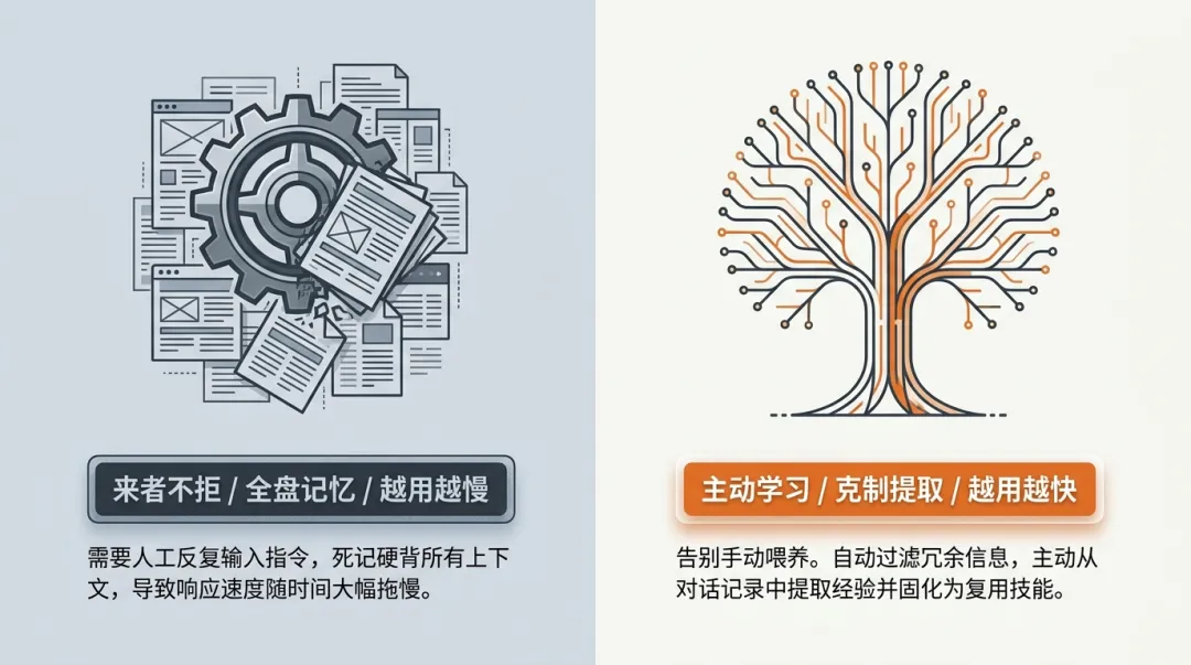 以前我们用AI,总得手动教它、给它设定记忆。但“爱马仕”完全不同,它最大的亮点就是能“主动学习”。在和你聊天的过程中,它会自动分析哪些内容该记住,哪些经验可以提取成专属技能,完全不需要你手动去管理它的记忆库。用久了,它就像一个越来越懂你的贴心私人助理。实测下来,它的回复速度很快,甚至感觉比OpenClaw还要聪明一点,因为它会自动过滤掉没用的上下文,只记住重点。