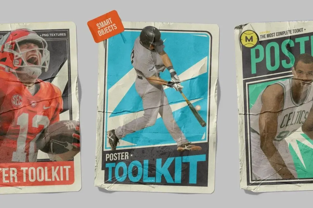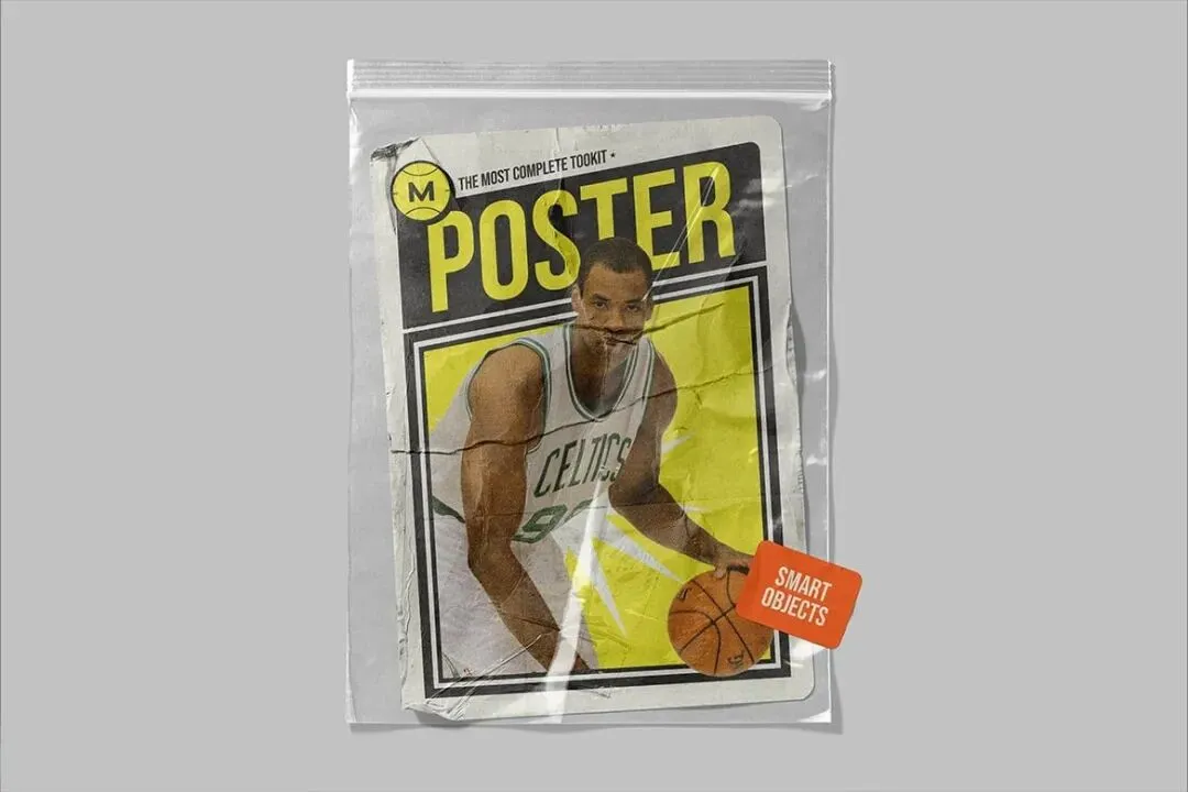 2款真实复古撕裂褶皱纸质球星卡PSD样机