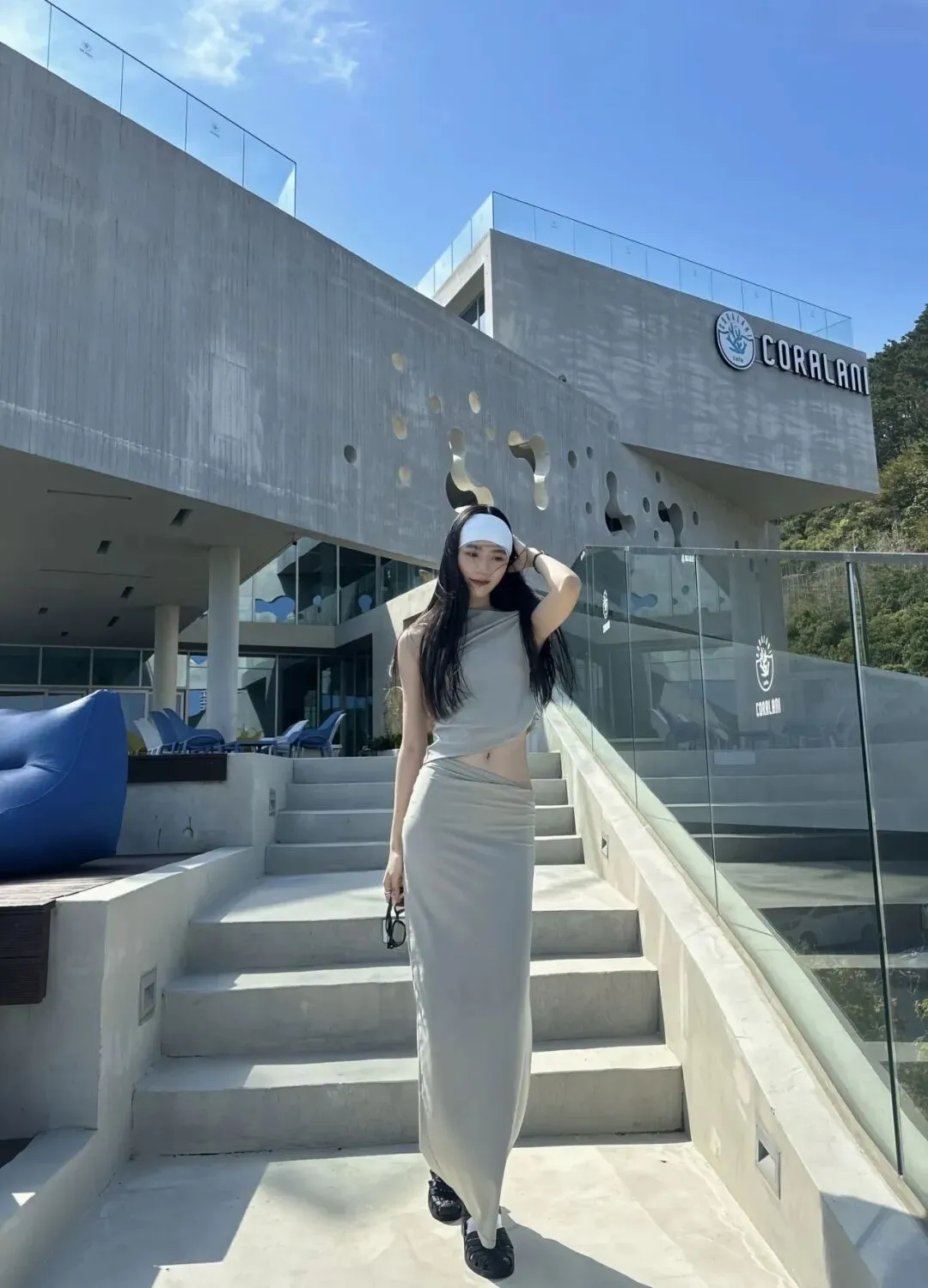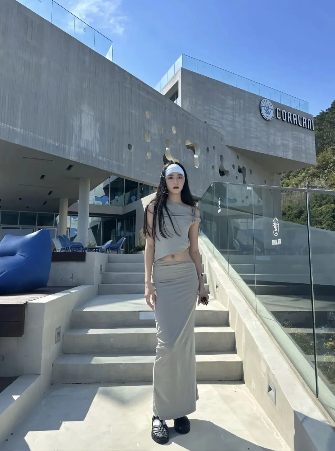 网红建筑拍照穿搭模板!斜肩露腰套装搭凉拖,辣度刚刚好#松弛辣妹穿搭 #斜肩露腰套装 #包臀长裙穿搭 #厚底凉拖 #度假风穿搭 #网红建筑拍照穿搭 #小个子显高穿搭 #梨形身材显瘦穿搭 #同色系穿搭 #辣妹穿搭