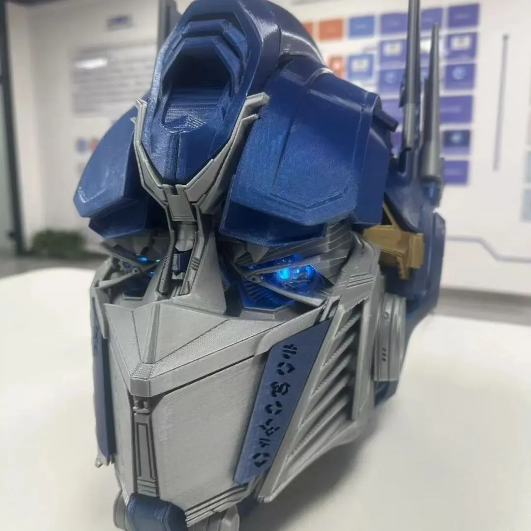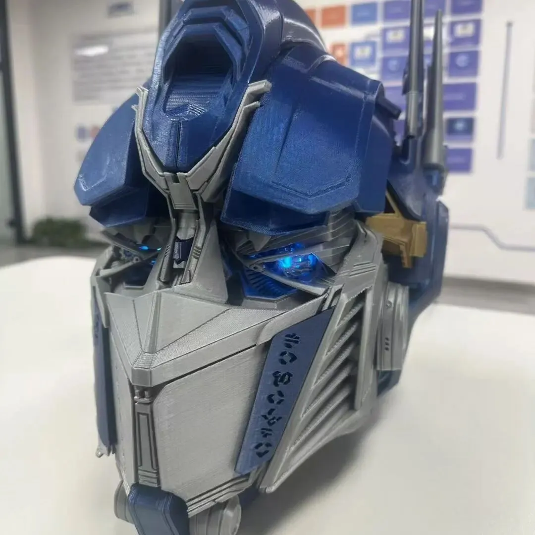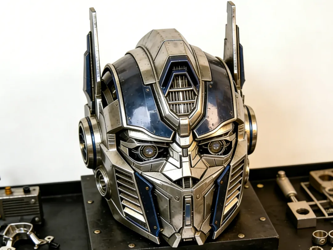 展示已组装完成的擎天柱头盔,呈现其完整形态与精致细节,并演示大语言模型与头盔之间的智能交互对话,带来沉浸式的机甲互动体验。