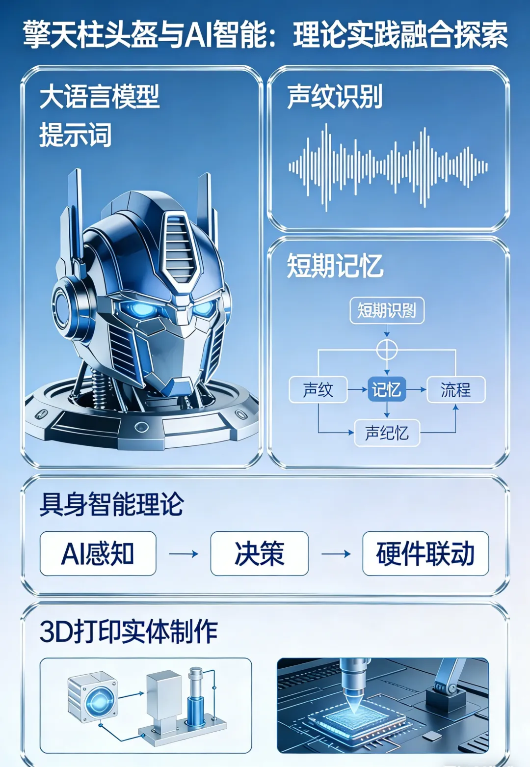 从 3D 打印拼装到线路精准连接,从 AI 语音逻辑拆解到智能控制系统调试,我们以擎天柱头盔为载体,将大语言模型、智能交互、与电路原理融为一体。在动手实践中探索科技奥秘,在组装调试中实现创意落地,让每一个零件都焕发出智能生命力。这不仅是一次科创实践,更是一场感受科技魅力、点亮创新梦想的成长之旅。