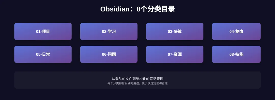│ 原始记录 + 实体图谱 + 结构笔记 │