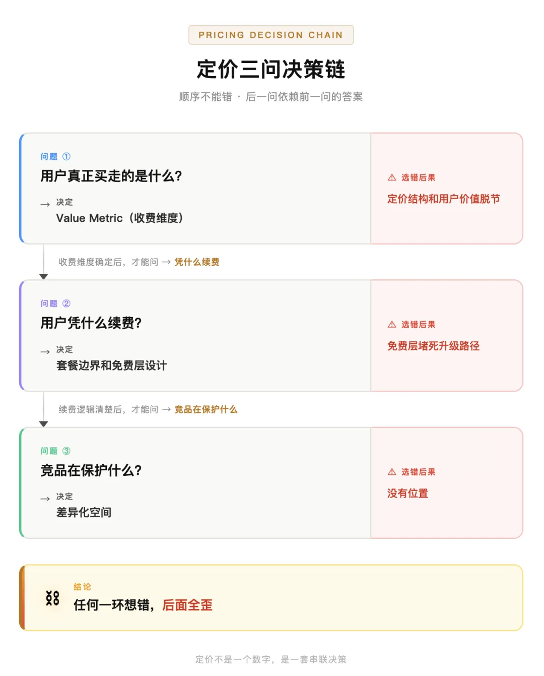 定价从来都是三个问题串联在一起的决策链。顺序不能错——第一个没想清楚,后面两个根本无法正确回答。