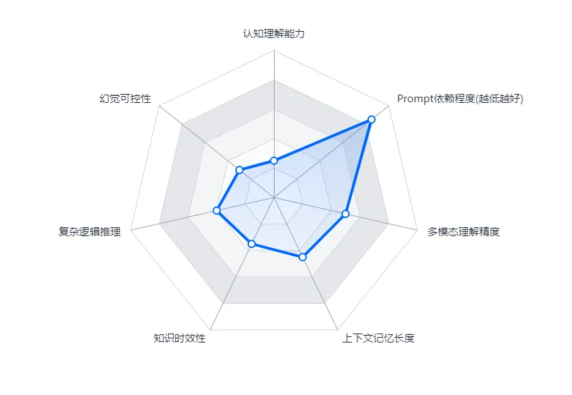 了解大模型的能力边界,能避免产品设计中出现“过度依赖模型”“需求无法落地”的问题。认知理解能力:没有真正的理解与意识,只是概率拟合【模型通过学习数据规律,预测最可能的输出,而非真正理解内容】,不是真“懂”,所有输出均基于训练数据的规律,无自主思考能力。幻觉可控性:会产生幻觉(核心缺陷)【模型输出不存在、不准确的信息,类似“瞎编”】:没见过的知识、模糊的指令或复杂场景下容易瞎编,尤其实时信息、专业数据、小众知识点,且部分幻觉难以快速识别,需人工校验;即使是头部模型,也无法完全规避幻觉问题,仅能通过RAG检索增强、Prompt优化降低幻觉率。复杂逻辑推理:只能进行有限的复杂逻辑,多步数学、强推理、强因果容易出错,无法像人类一样进行深度逻辑推导,尤其在跨领域复杂任务中,易出现逻辑断层、结论矛盾。知识时效性:时效性滞后(实时性不足)【模型训练数据有固定截止时间,无法获取训练后新增的实时信息】:训练数据截止后发生的新事件、新政策、新数据均无法识别,需通过工具调用(如搜索引擎)补充实时信息,否则会输出滞后或错误内容,无法适配强实时场景(如实时新闻解读、实时数据查询)。上下文记忆长度:由于上下文长度有限,模型无法记住超过上下文长度的历史内容,存在“短期记忆”局限。超过上下文窗口长度(如4k、8k Token)会“失忆”,无法关联早期对话或长文档中的关键信息;即使在上下文窗口内,长对话后期也可能出现记忆偏差、信息遗漏,影响多轮交互体验。多模态理解精度:多模态仍有局限性,复杂图表、手写、模糊图片容易理解偏差;同时单一模态模型存在各自明显缺点(如图像模型角色不一致、语音模型口音适配差),不同架构(Diffusion、Transformer等)的模型在速度、效果上各有优劣。提示词依赖程度:重度依赖提示词(Prompt),模型输出质量高度依赖用户提示词的清晰度、完整性和专业性。若提示词模糊、不具体或缺乏引导,模型会输出偏离需求、质量低下的内容;即使是同一模型,不同Prompt引导下的输出差异极大,需通过Prompt工程优化才能发挥模型效果,增加了用户使用和产品设计的门槛。