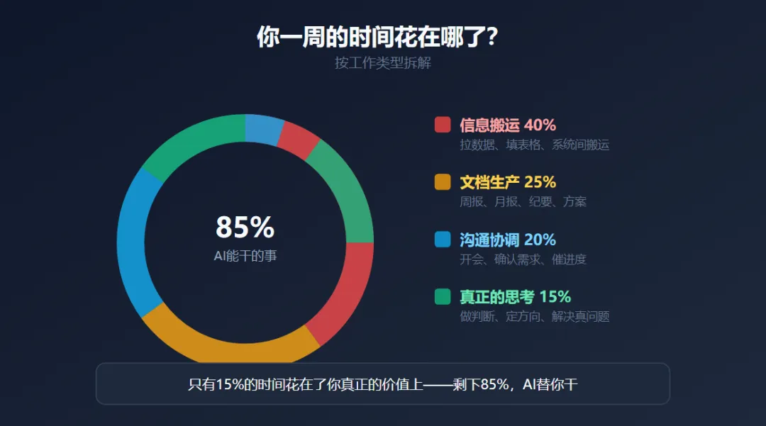 看到了吗?你一周80%的时间,花在了AI能干的事情上。