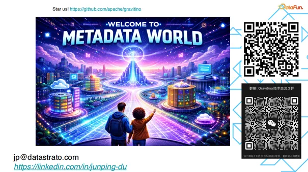 欢迎来到元数据的世界(Welcome to the world of metadata)。Apache Gravitino 等开源项目正在搭建 Agent 与数据之间的桥梁,构建开放、统一、智能的数据基础设施,真正释放 Agentic AI 的潜力,让 AI 从实验室走向生产环境的每一个角落。