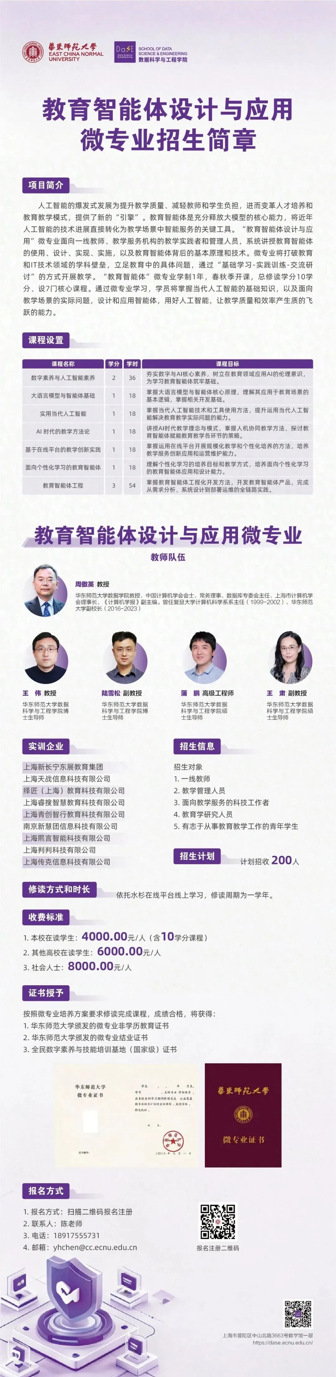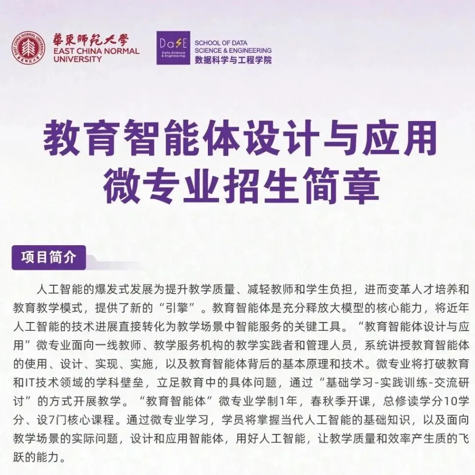 华东师范大学“教育智能体设计与应用”微专业招生简章正式发布!