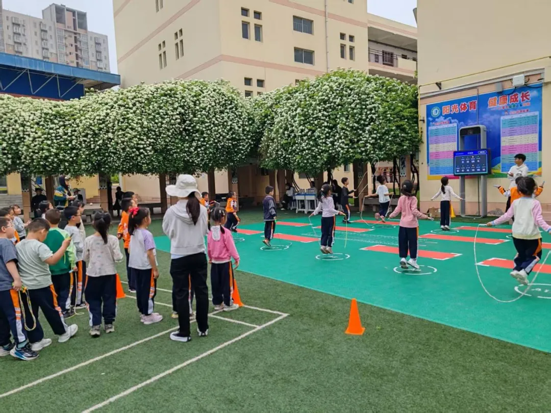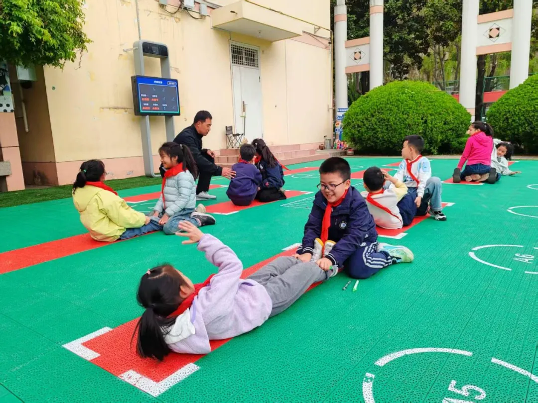 此外,学校还将教学楼下空闲场地改造成课间打卡的运动“小阵地”。孩子们无需老师陪同,自主操作智能设备就能轻松锻炼,课间碎片化时间化作快乐运动时光,校园里随处可见朝气蓬勃的运动身影。