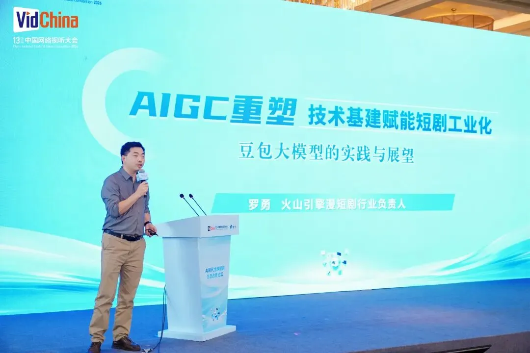火山引擎漫短剧行业负责人罗勇从技术基建角度分享了AI如何赋能短剧工业化。他介绍了豆包大模型(Seedance 2.0)的多主体参考、智能分镜、极致性能等能力,一天可支持百万分钟级视频创作。同时也指出当前模型在记忆、逻辑连贯性、安全治理上的不足,并提出通过资产库建设、Human-in-the-loop、智能体(Agent)等方式补齐短板。他展望未来智能体将越来越聪明,内容创作只需自然语言,模型服务像水电一样易得。