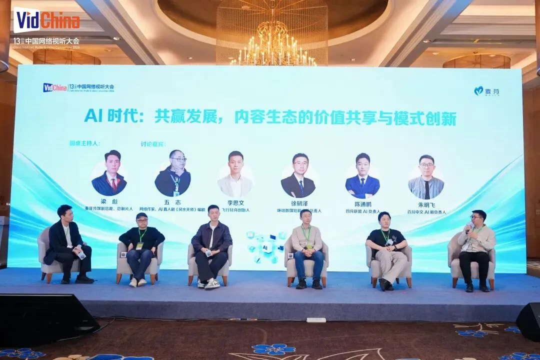 论坛设置了两场高规格圆桌对话。上半场由麦芽传媒副总裁梁彪主持,嘉宾包括网络作家五志、飞行轻舟创始人李思文、咪咕数媒短剧业务负责人徐韧泽、四月联盟AI负责人陈通鹏、百川中文AI剧负责人朱明飞。嘉宾们围绕AI对剧本创作、制作转型、平台生态的影响展开讨论,一致认为AI时代需要找准自身定位,开放合作,用长板互补。