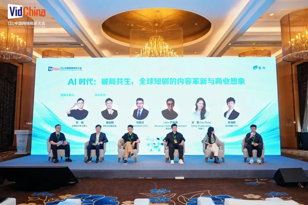 下半场由短剧自习室主理人羊阳主持,嘉宾包括枫叶互动副总裁南亚鹏、NetShort CFO刘思洋、Reverse Clock Entertainment联合创始人芦海潇、Genly Productions创始人张勤、花生短剧CEO吴海明。嘉宾们探讨了AI在海外短剧中的实际应用——从降低制作成本、加速题材创新,到解锁细分文化市场。