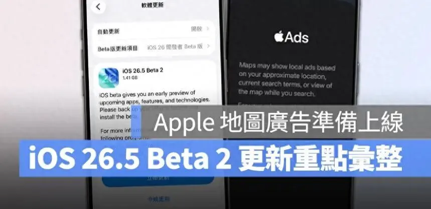 4月14日苹果推出iOS 26.5Beta 2;本次更新整体变化不大,唯一值得注意的是先前提到的「Apple 地图广告」已在iOS 26.5 Beta 2 中准备上线。