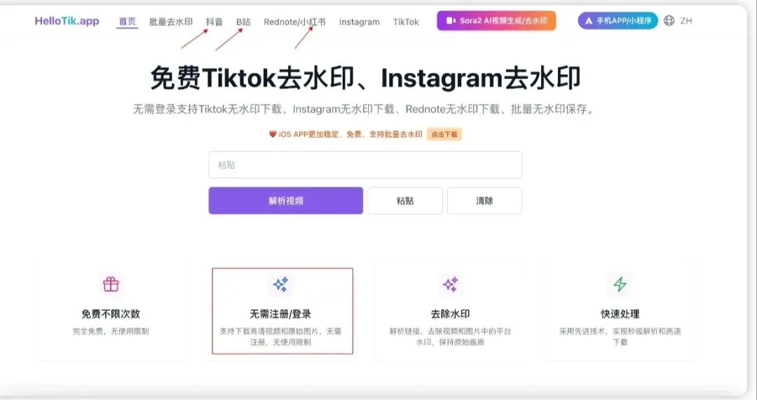 hellotik:免费不限次数 不需要注册 可以去除水印,处理很很快。