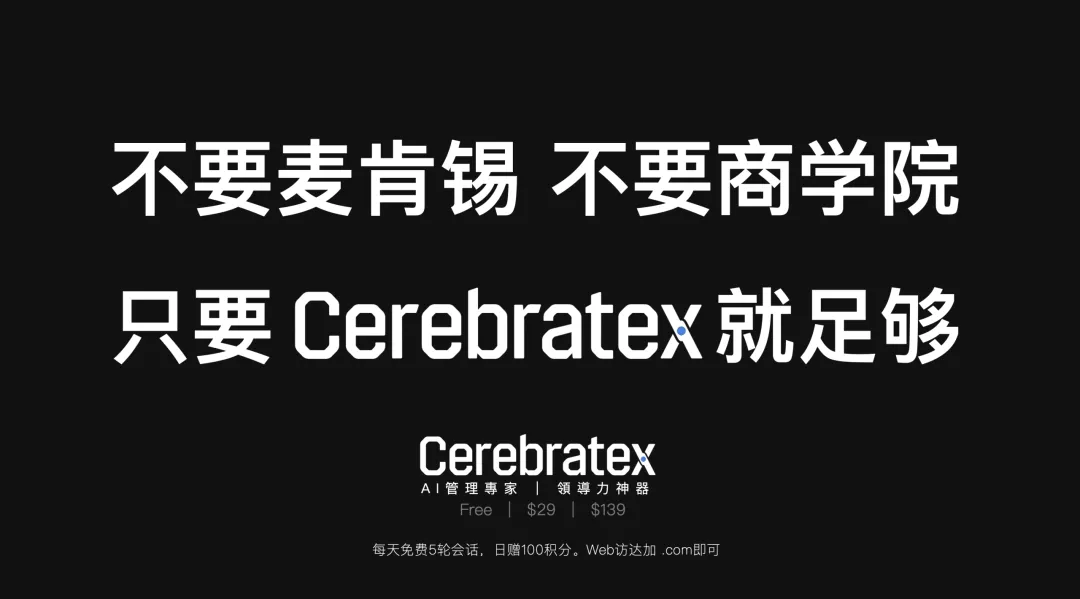你不用再被经验边界束缚,不用再孤军奋战,CerebrateX 让每一位中层甚至基层管理者,都能随时调动符合公司战略意图的“顶层智慧”,把个体力量汇聚成不可阻挡的组织合力。