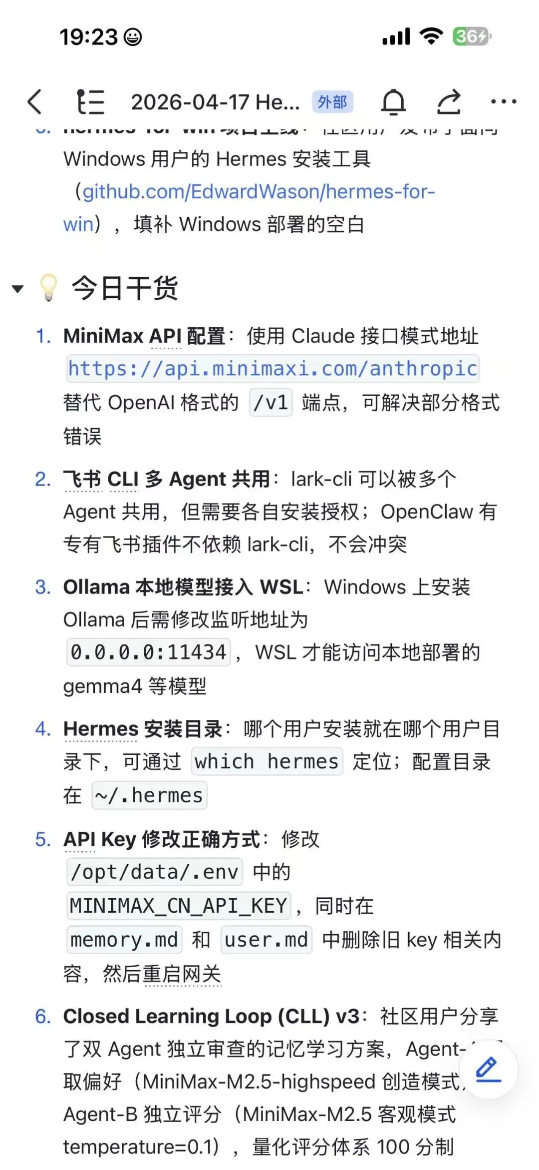 这些内容被追加到 Wiki 页面里,新人来了直接看就行,不用翻几百条聊天记录。