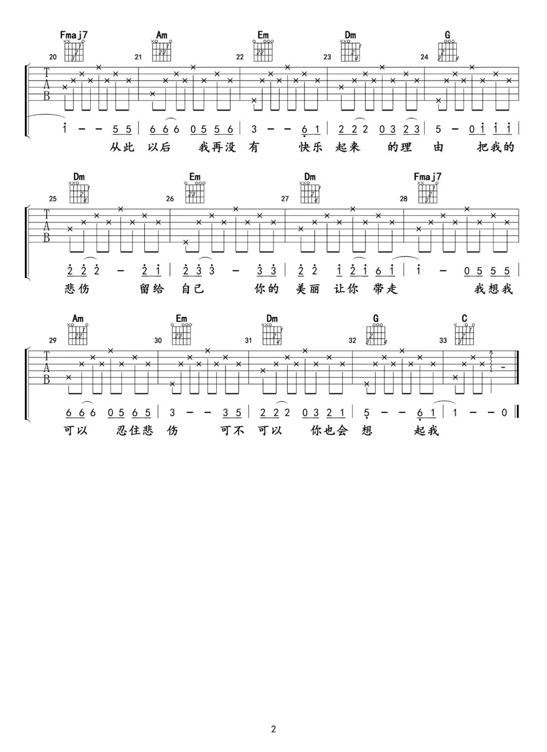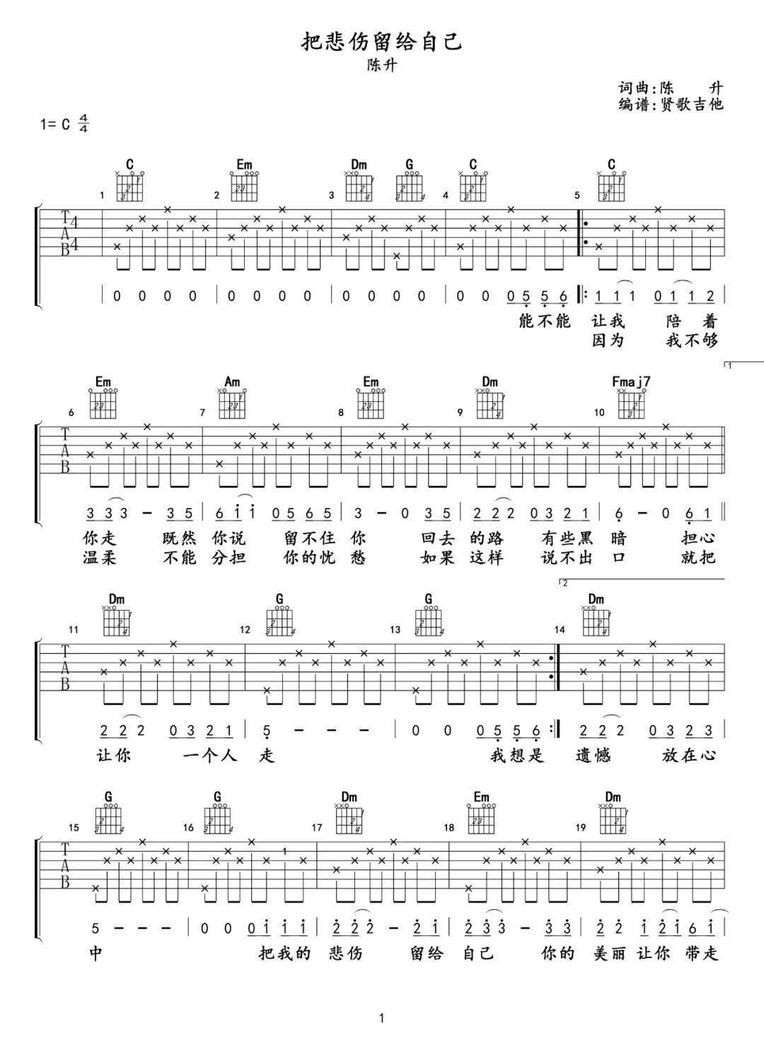 今天开始,提供吉他谱配套练习,这次带来经典老歌《把悲伤留给自己》专属MIDI音频伴奏。