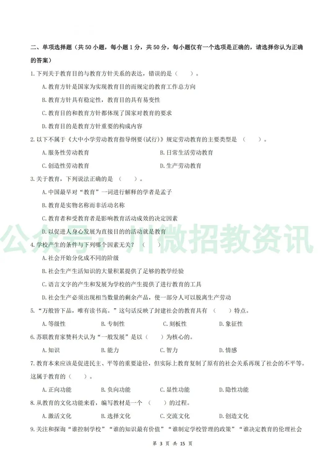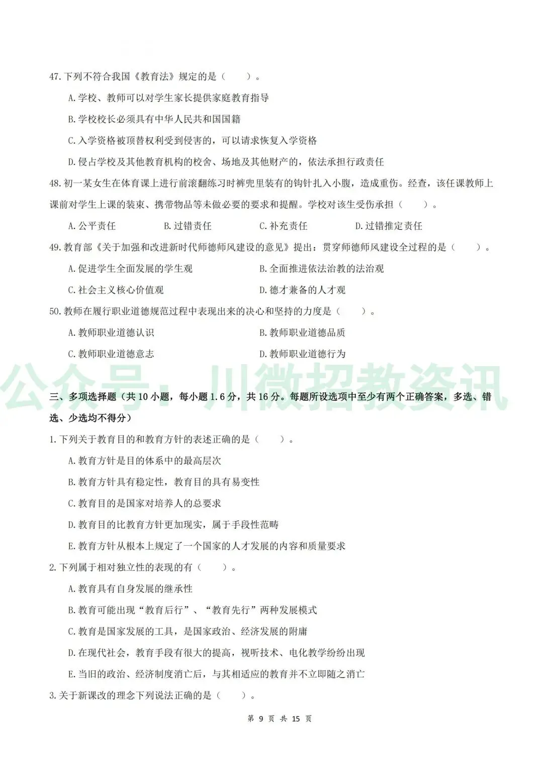【2014-2025连续12年 四川教师公招笔试真题】