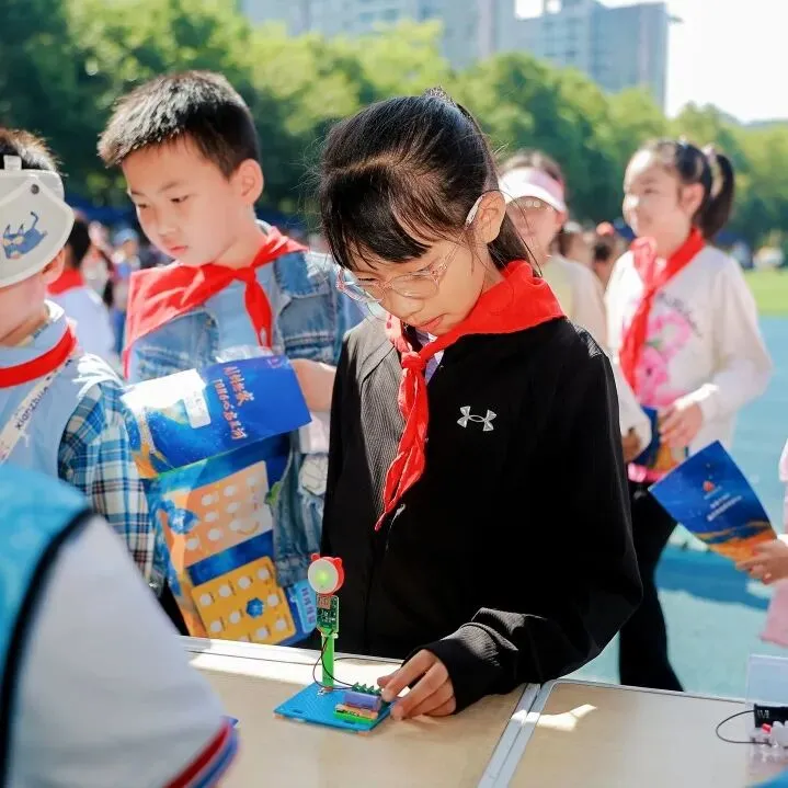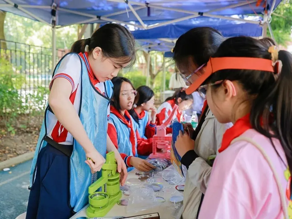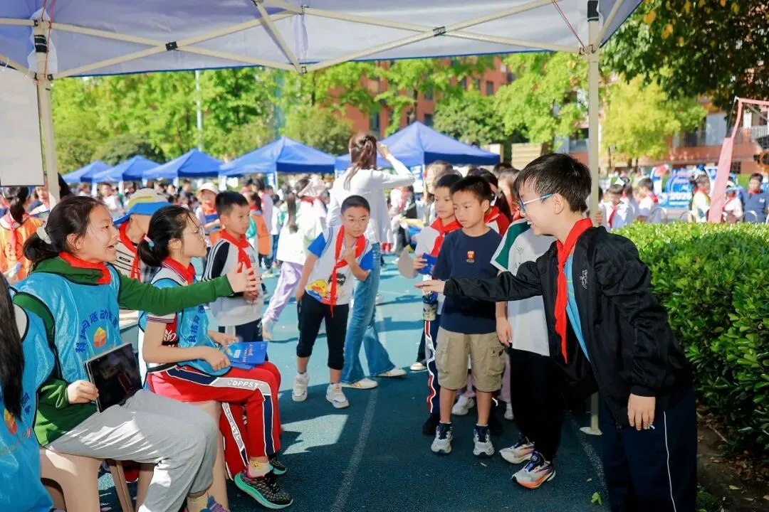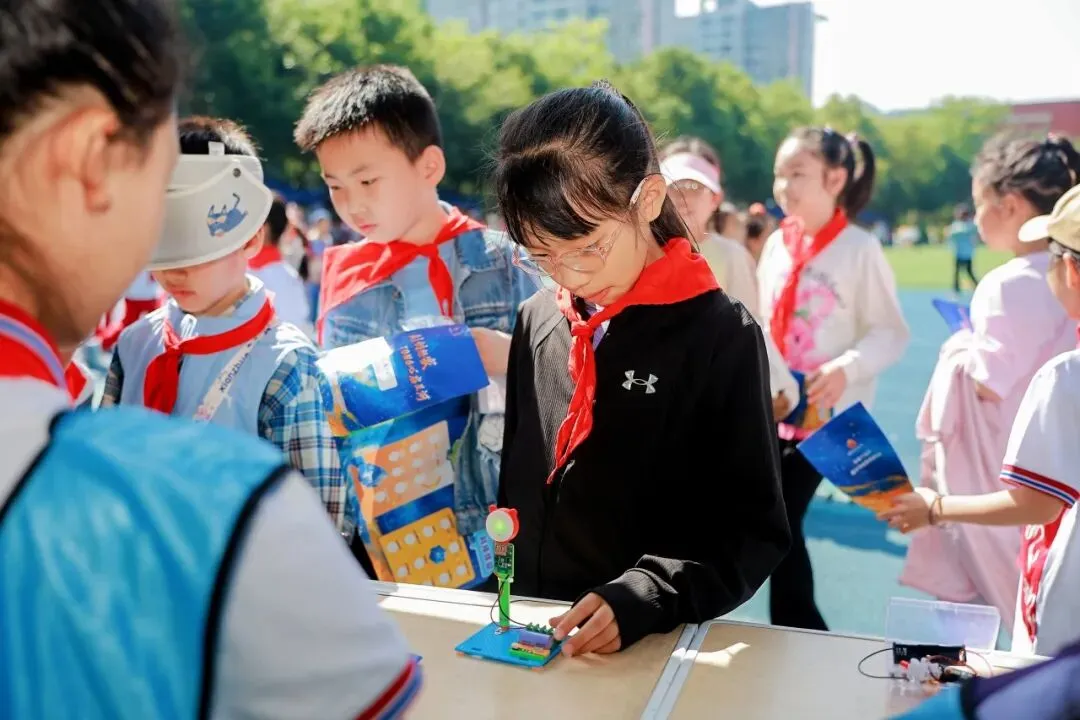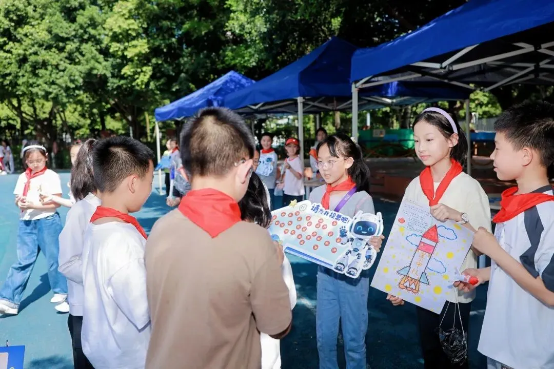 趣味答题在校门处火热开启,小泡泡们踊跃参与、集齐印章兑换神秘大奖,在趣味互动中点燃科创热情,提前感受科技月的独特魅力。