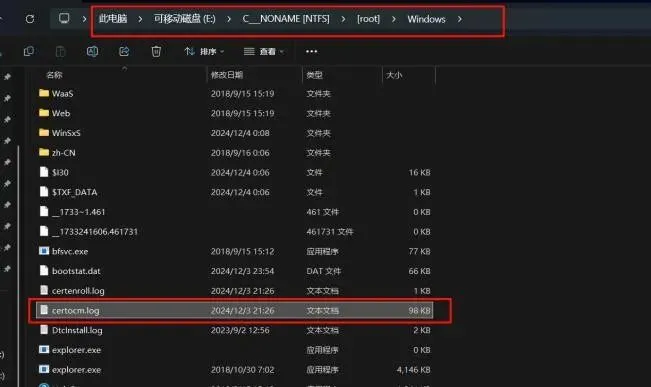 在Windows目录发现CertOCM.log日志文件