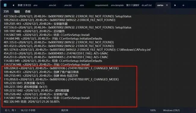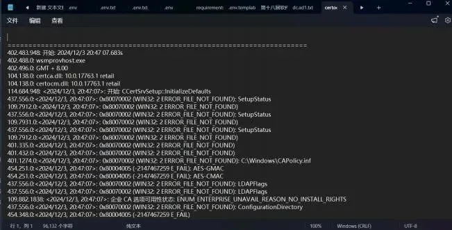 Windows系统中 ,CertOCM.log是Active Directory Certificate Services(AD CS)安装与配置过程中生成的设置日志文件 ,主要用于记录证书服务角色安装的详细步骤、成功或失败信息 ,以及相关错误代码 ,帮助管理员在部署或排错时了解内部执行流程。