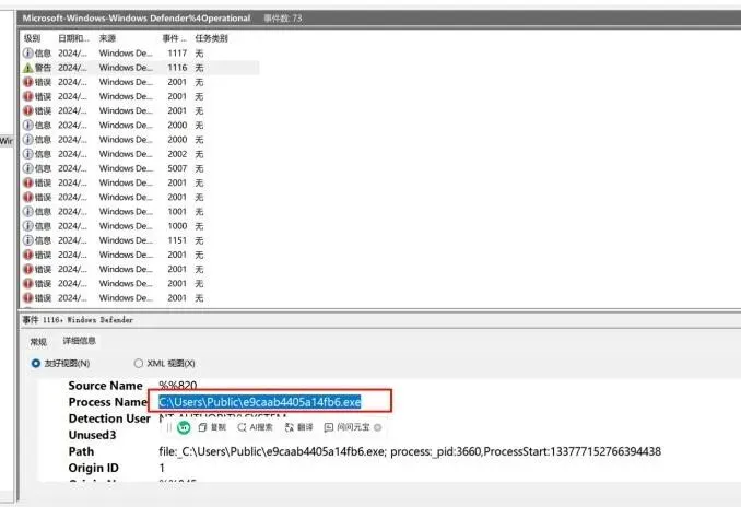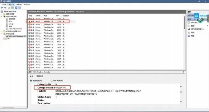 通过Windows Defender日志追踪被查杀的恶意文件。