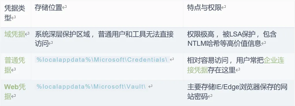 Windows 凭据管理器是存储这些连接凭据的核心区域 ,按存储位置和敏感程度 ,主要分: