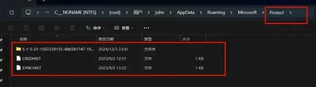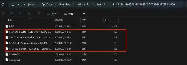 离线解密需要知道用户的SID以及密码 ,在Protect目录