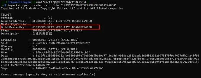 每个主密钥都有一个随机生成的 GUID ,文件名就是这个 GUID要用dpapi要先安装impacket包