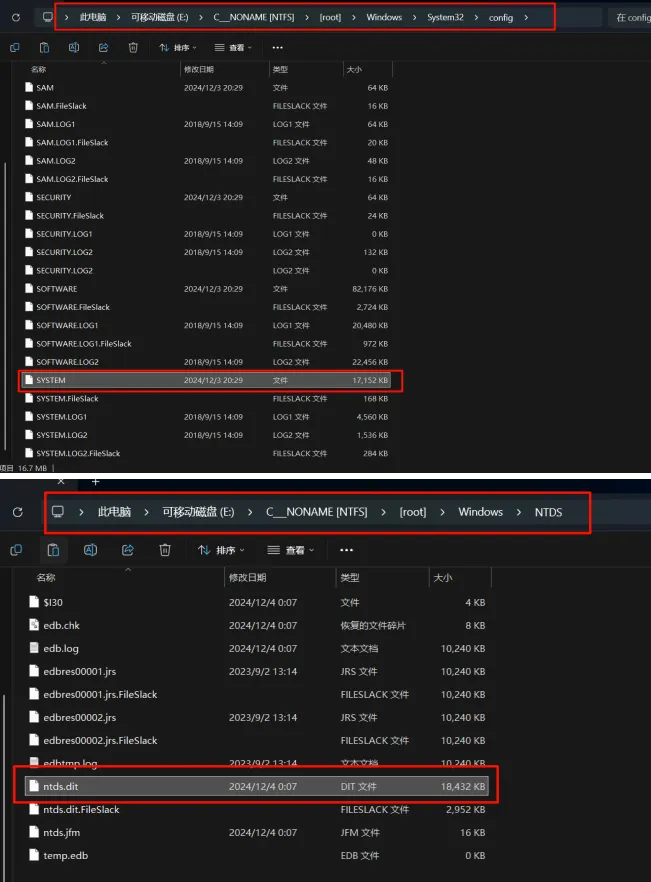 路径: E:\C NONEAME [NTFS] \ [root] \Windows\NTDS\ntds .dit