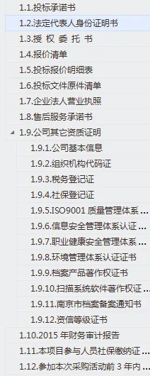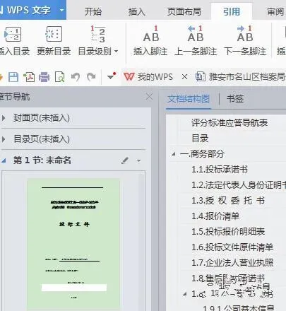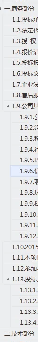 第一步:制作投标文件 的封面,如果招标文件有提供格式即按照其格式来,如果没有格式可以自己想一个一般的投标文件格式,比如我这边的一个例子:如下 图整体来讲,投标文件的主体内容分为商务部分和技术部分,另外可副加“其它部分”商务部分:主要放以下这些文件(自然是招标文件中所提及到的或者可以给投标方得分有助于中标的资格性文件)如下 :”商务响应偏离表“是招标文件中经常提到到填充的,是商务部分的核心部分,它的格式一般在招标文件中都有模板,只能找到相对应的内容填进去就好了。一般有(响应时间、服务地点、交货期、履约保证金、、、、)有正偏离的最好用着重号标明出来,可能有助于将自己公司的优突显出来 ,帮助更好的中标。技术部分:主要是对自己公司基本现况所有的技术描述,运作程序、及项目实施方案、人员安排、售后服务、等等一系列的详细说明,如下”技术响应偏离表“是对招标文件中提及到的技术要求作一个完整的响应,特别是招标文件中加了着重号的篇目,如若不完整放入偏离表中则及有可能会造成废标的呢。最后一部分是“其它部分”:用于填入本公司觉得需要放入的其它资格性材料或者说放入公司的一些业绩啥的,基本情况表也可以放这里面,如果还有可以得分的其它资料都放入这其它部分就好最后需要给自己编辑的投标文件添加一个目录:以便于对方查阅,点击“引用”看到左下方的“插入目录”点击一下即可这里有很多种目录形式,可以选择一个自己喜欢的,单击鼠标即可完成目录的插入页眉页码的插入:点击“插入”选择右边的“页眉”页码也是如此。一般公司都会把自己的标志放或者网址放入页眉中哦需要注意的有哪些呢?