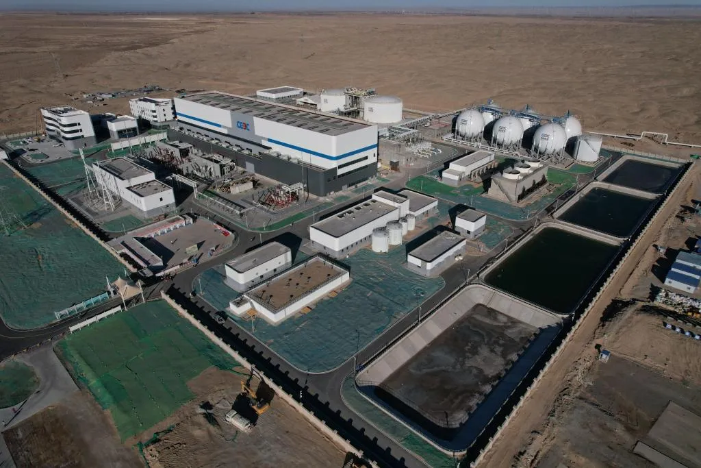 这是2025年12月2日拍摄的位于甘肃酒泉的300MW压缩空气储能电站示范工程(无人机照片)。新华社记者 范培珅 摄