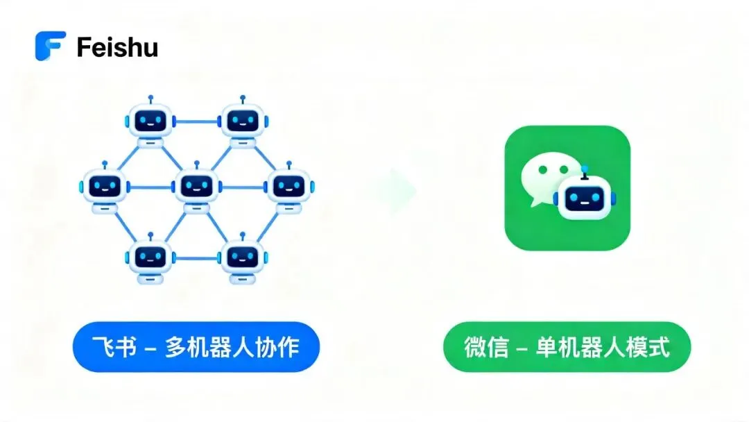飞书群里直接拉机器人就行,不像微信加个bot还要扫码关注、走各种流程。对于想快速搭建"AI工作流"的用户来说,这个体验差距是明显的。