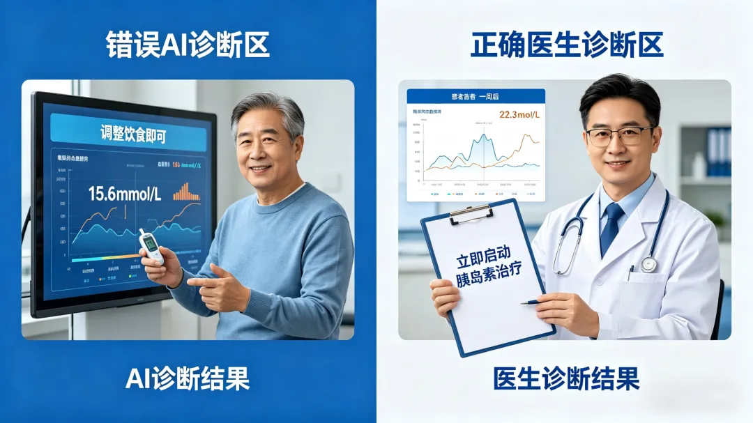 研究案例记录:糖尿病患者因AI建议“调整饮食即可”,延误胰岛素治疗整整一周。
