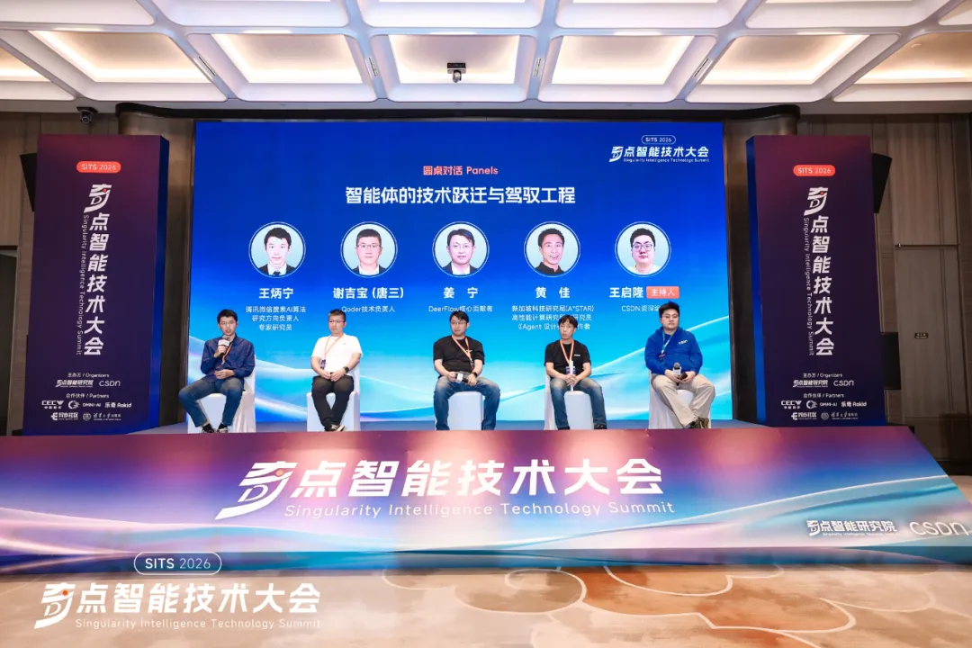 带着这个疑问,本场以“智能体的技术跃迁与驾驭工程”为主题的圆桌对话正式开启,在 CSDN 资深编辑王启隆的主持下,腾讯微信搜索 AI 算法研究方向负责人、专家研究员王炳宁,Qoder 技术负责人谢吉宝(唐三),DeerFlow 核心贡献者姜宁,以及新加坡科技研究局(A*STAR)高性能计算研究所 AI 研究员、《Agent 设计模式》作者黄佳齐聚一堂,围绕智能体技术跃迁路径、驾驭工程实操难点、行业落地新可能等话题,展开了一场观点碰撞拉满、干货密度超标的深度对谈。