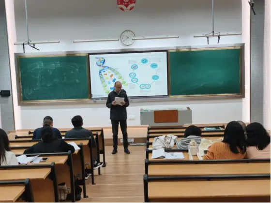 说课环节中,宋欣老师以胚胎工程中的受精过程与早期胚胎发育为授课核心,明确该内容在教材中承上启下的定位。教学中,宋老师运用AI生图创设情境、AI修图优化素材以及借助AI动画降低抽象知识理解难度,还尝试通过实时对话互动活跃课堂。宋老师表示,本次课堂较好地达成了教学目标,缓解了理论课本身的枯燥感。除此之外,她也提到,自己克服了对AI教学的抵触心理,掌握了AI教学的相关技能,更收获了教研组给出的宝贵指导。