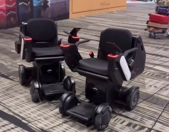 这两台AI轮椅是樟宜机场今年1月在"T5规划展览"上展示的新技术,主要用来帮助行动不便的旅客在航站楼内移动。
