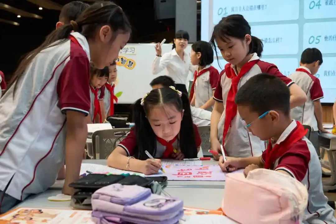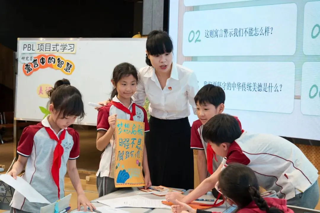 这堂课以“寻寓言美德·践美德之行”为主线,将《叶公好龙》《南辕北辙》《守株待兔》《邯郸学步》四则寓言与共产党人的榜样故事巧妙融合。三年4班的学生们以“美德研究员”的身份分组探究,制作“美德卡”,在寓言中寻找中华传统美德,在学习榜样中践行美德。