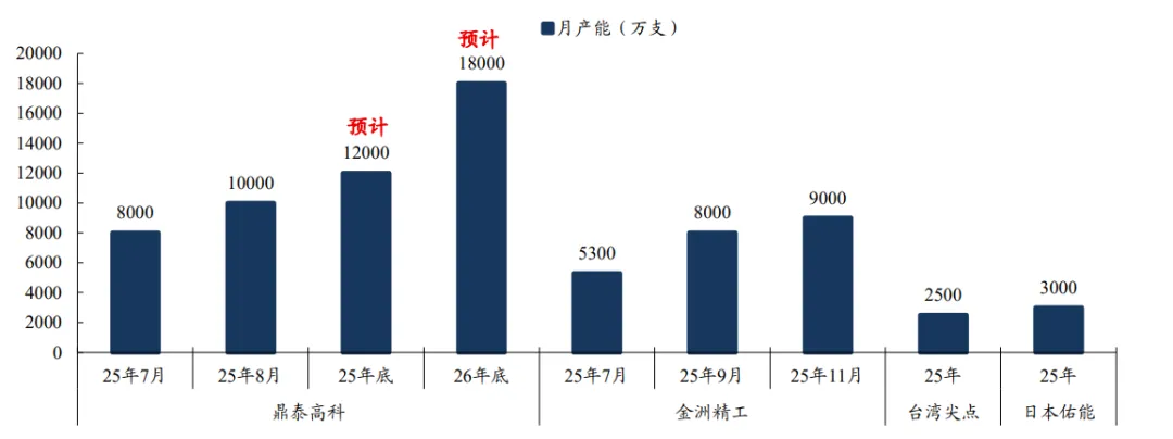 台湾尖点:2026年月产能提升至4500万支。