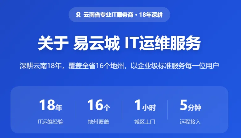 易云城IT服务 | 云南省16地州IT技术服务平台电脑维修·系统安装·网络维护·数据恢复电话:13708730161 | 微信:eyc1689 | 网站:www.eycit.com