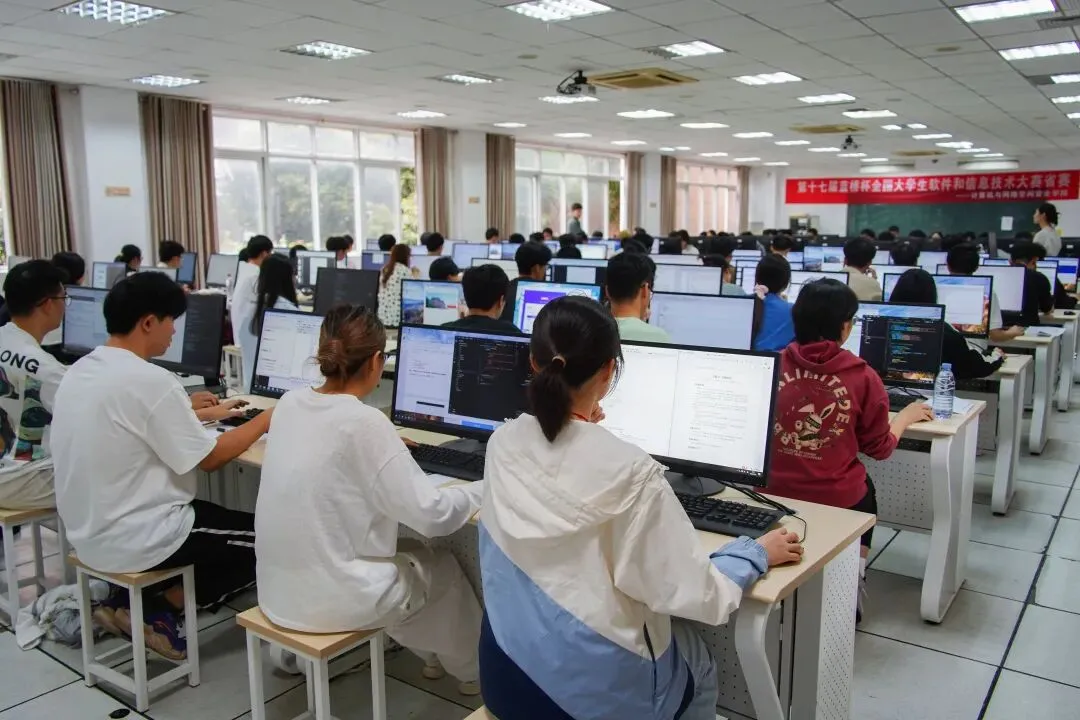本次省赛设置C/C++程序设计和Web应用开发两个组别,重点考察参赛学生在算法设计、数据结构运用、程序开发与问题解决等方面的实践能力。比赛过程中,选手们全神贯注、冷静作答,凭借缜密的逻辑与熟练的代码编写能力从容应对考题,充分展现了我校学子在信息技术领域的专业素养。